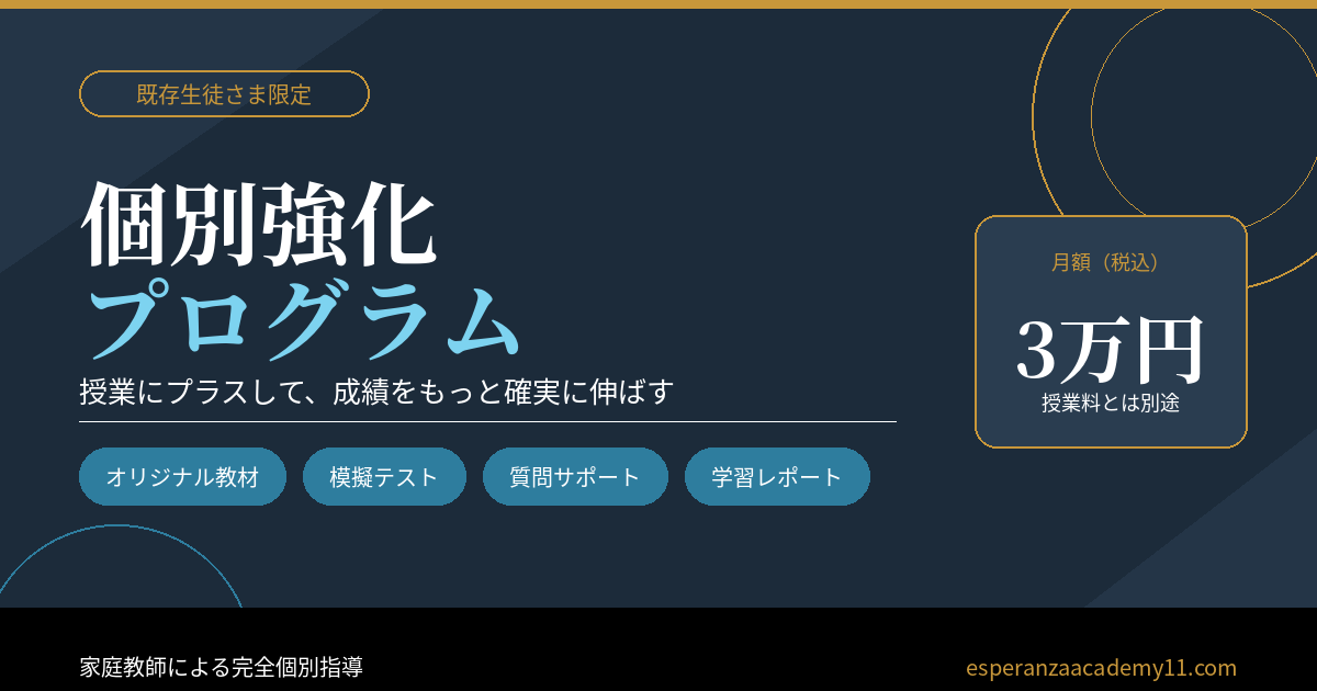 エスペランサアカデミーでは、お子さまの学校・進度・苦手に合わせた